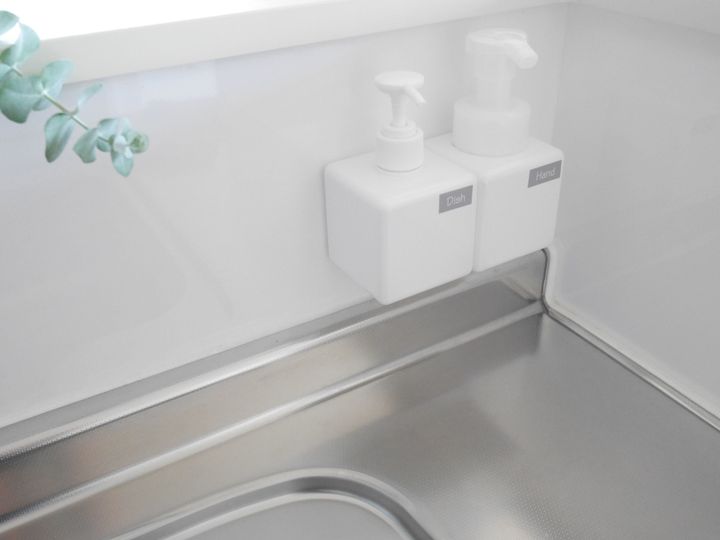 使い道はいろいろありますが、筆者おすすめの使い方は、キッチンで洗剤ボトルを浮かす使い方です!