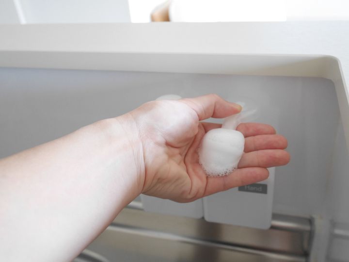 貼り付けるだけで手軽に浮かすことができて、洗剤ボトルが水浸しになったり、接地面がヌルヌルになったりする心配がなくなります。