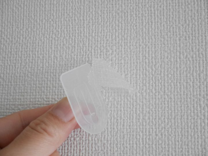 取り付け後、24時間経過すると接着剤が固まり、フックがしっかり固定されますが、取り外し後に壁紙に跡が残らないという優れものです。