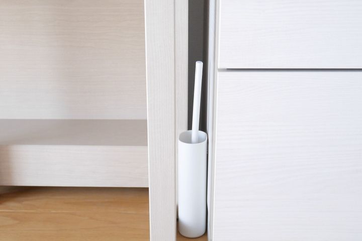 生活感が出やすい掃除グッズですも、家具と馴染むシンプルな色のモノを選び、隙間にそっと置いておけば出しっぱなしでも目立ちません。