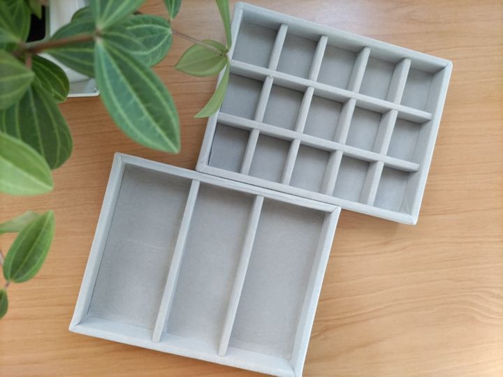 アクセサリーなど細かいものを入れられるような高さが低いものです。