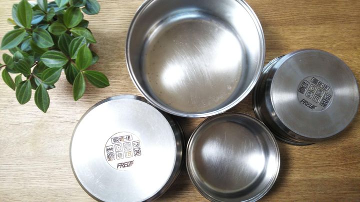 離乳食もこの中の一番小さいサイズの鍋で作ってました。当時の子供のお気に入りはお粥に納豆を入れて煮込んだ「納豆がゆ」。保健所の離乳食教室で習ったときは、ビジュアルにちょっと引いてましたが、これを作れば喜んで食べてくれてました。ちなみに納豆好きの子に成長しました。