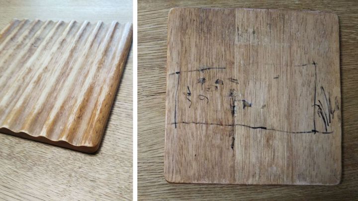 消せないかなと思っていた落書きも時間とともに薄くなり、今となってはいい思い出の世界で一つの鍋敷きになりました。