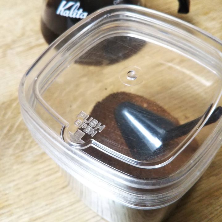 フタのpushの⇒のところを押すとパコンッって開くプッシュポット。セリアで購入したものですが、