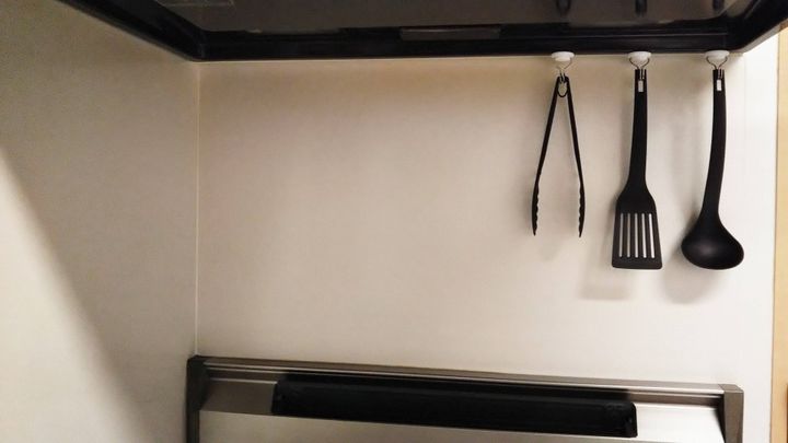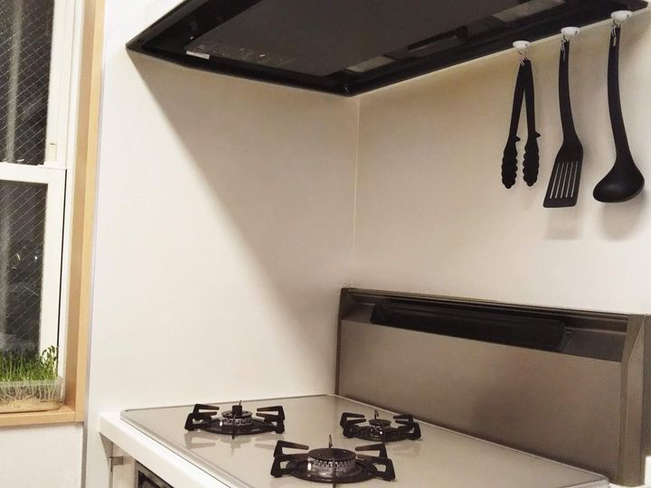 毎日どれかは使っているので、換気扇のところにマグネットフックを付けて引っ掛けています。