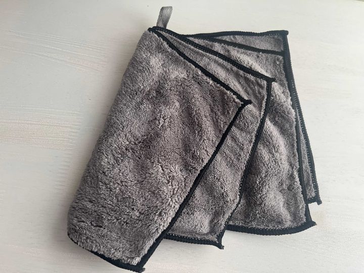 でも、きちんとふち取りされたマイクロファイバークロスで、かつ収納に便利なループ紐もついて110円。材料費と手間を考えたら安い!!