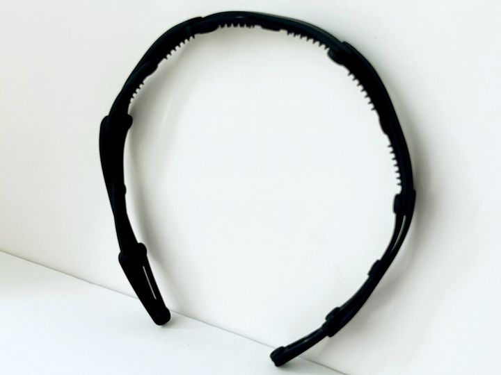 また、素材がプラスチックではなくABS樹脂なので、適度なしなりと柔らかさでフィット感も良く、長時間つけていても頭に痛みはありませんでした。