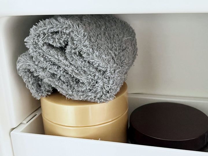 こちらは今までの収納。タオル素材のヘアーバンドをたたんで、押し込んでいました。