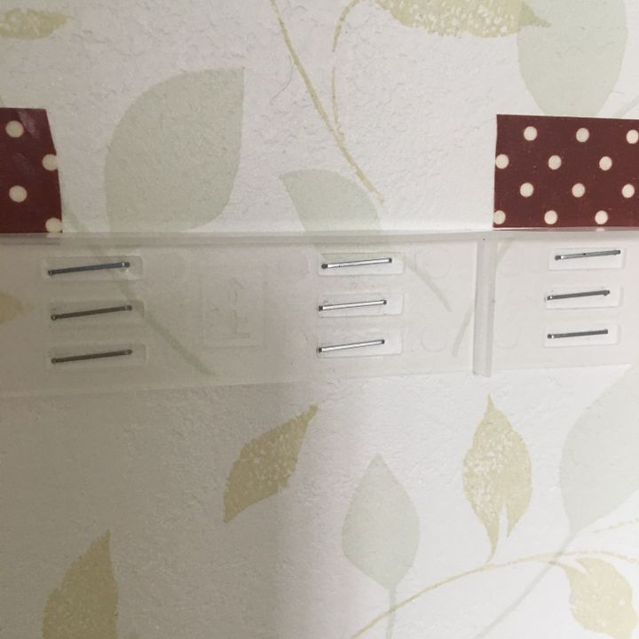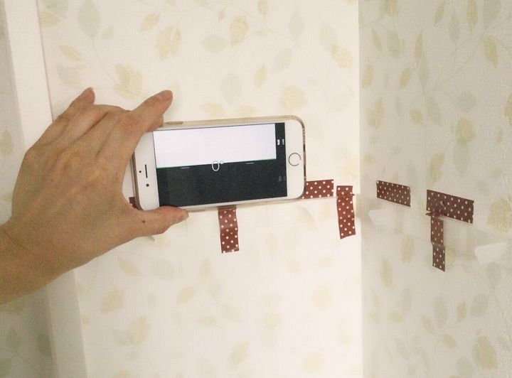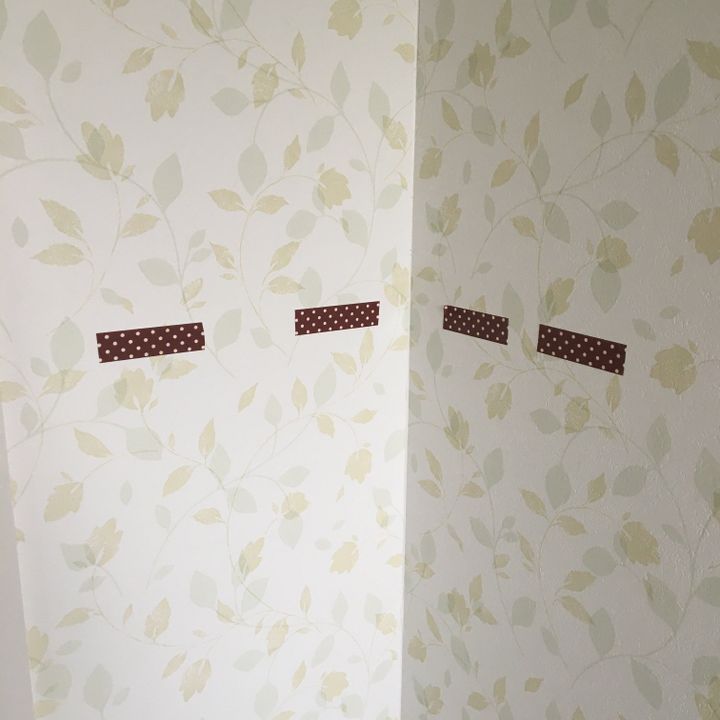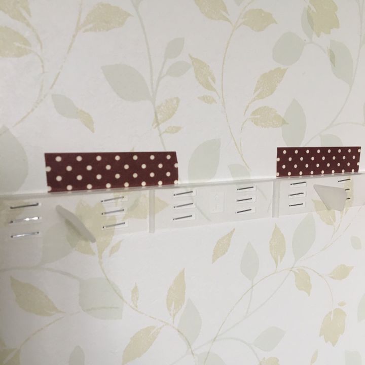 取り付ける位置を決めて、メジャーで測りながらマスキングテープで目印をつけます。