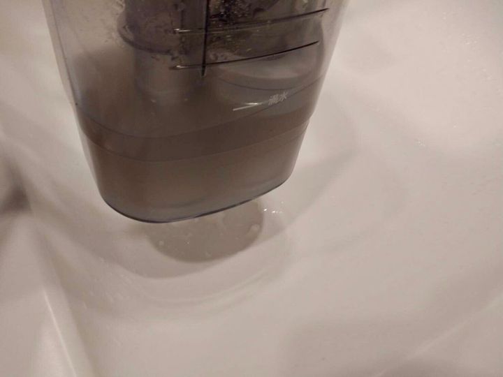 ソファ全体を掃除した後に溜まった水は濁っていました。