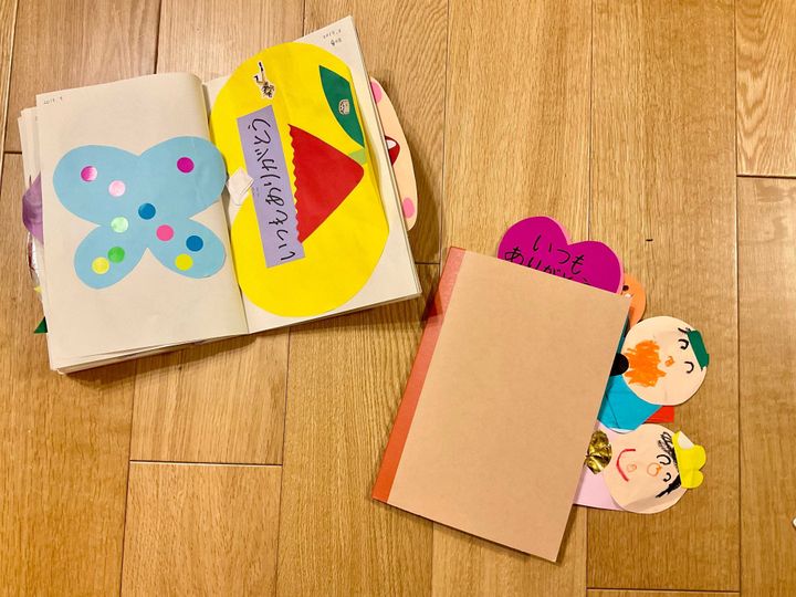 小さめの製作物や、嵩張るために写真で残すことにしたものはノートに貼っています。