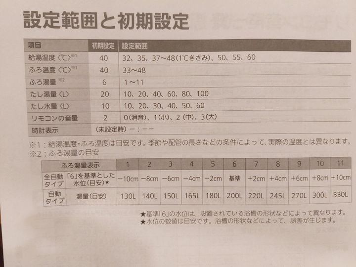 お風呂のサイズによって何リットルの設定があるのかは違います。