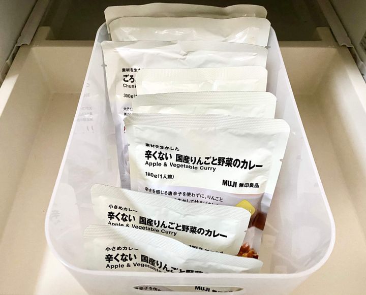 わが家では、普段食べ慣れている無印良品のレトルトを少し多めに買い置きし、ローリングストックを活用しています。