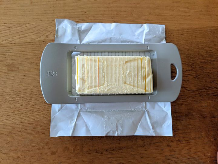 これまで小さい包丁で適当にカットしていたのですが、バターが包丁にくっつくことがあり煩わしかったので、約5gにカットできるバターカッターを購入しました。バターに触れることなく一気に切れて、衛生的かつ時短が叶います。