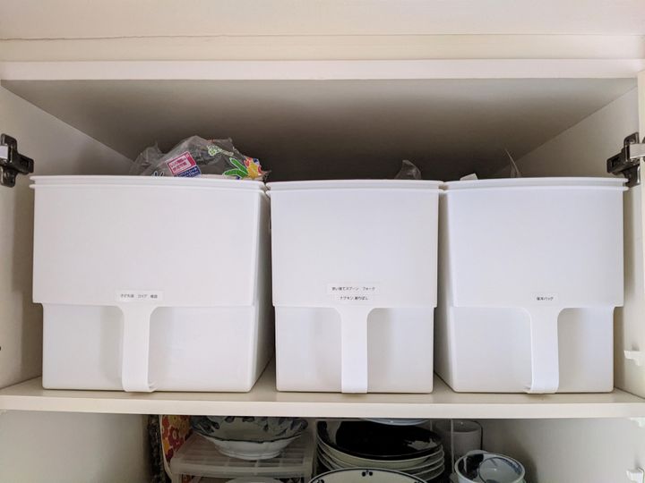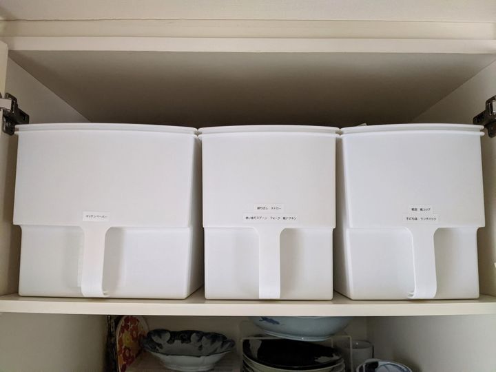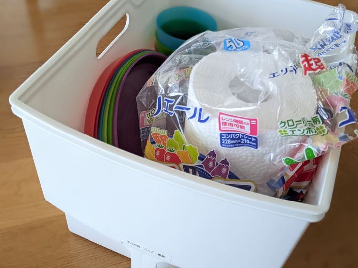ある日、新しいキッチンペーパーを取り出そうとしたところ、収納ボックスにはキッチンペーパーと一緒に子ども用のお皿とコップが!