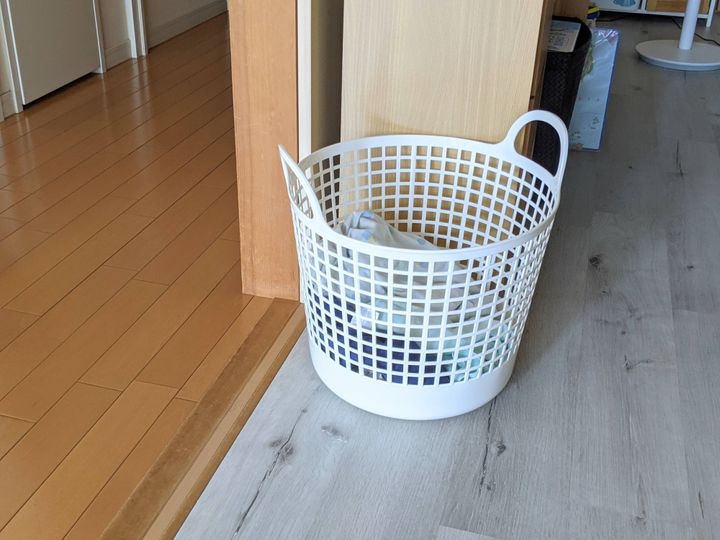そこで、リビング横の部屋に脱いだものを入れる一時置き用のかごを用意。「ここに入れてくれればいいよ」と伝えてみたところ、5日目くらいから声を掛けずともちゃんと入れられるようになりました!