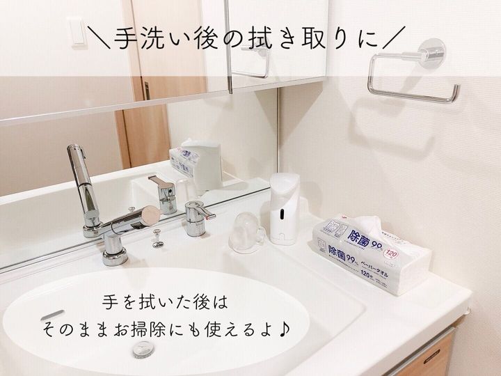 更に手を拭いたペーパータオルで、ササっとお掃除しちゃうのもいいかもしれませんね。