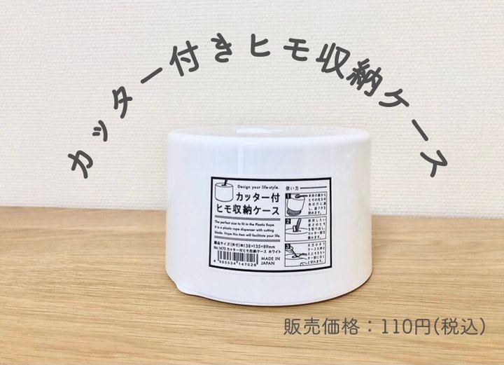 こちらがビニール紐の収納に便利な、「カッター付きヒモ収納ケース」です。