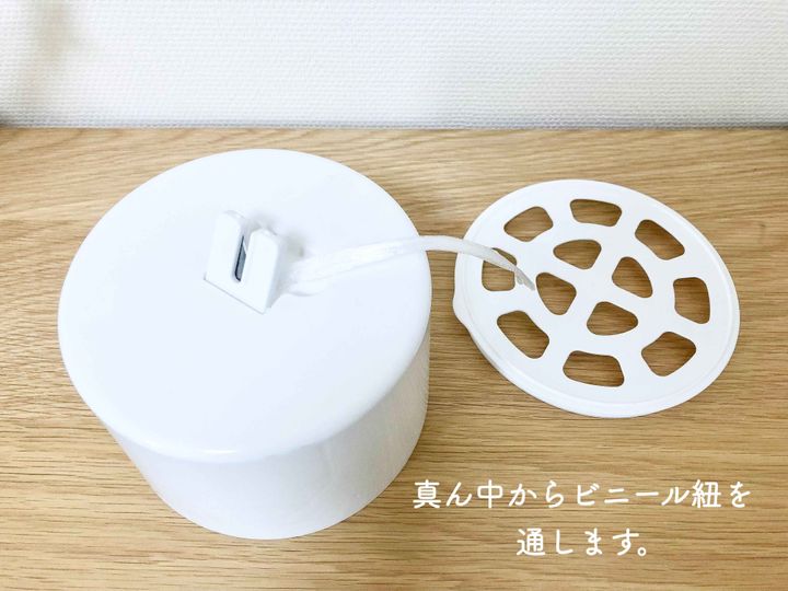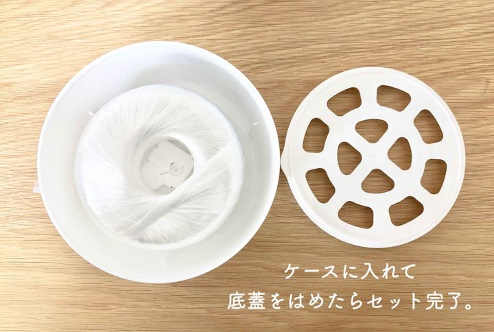 あとはケースにビニール紐を入れて、底蓋をはめたらセット完了です。