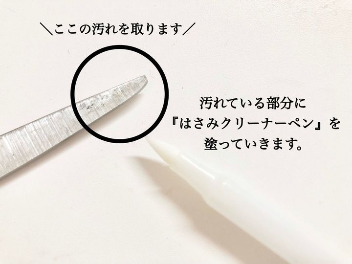 たったこれだけで取れにくかった汚れが取れ、ハサミの刃もスムーズに動くようになります。