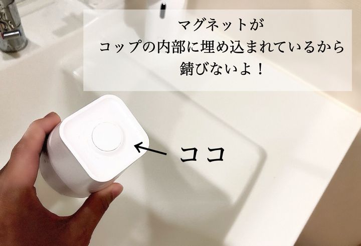 水周りで使うものなので、マグネットがコップの外に付いているものは錆びてきちゃうんですよね。