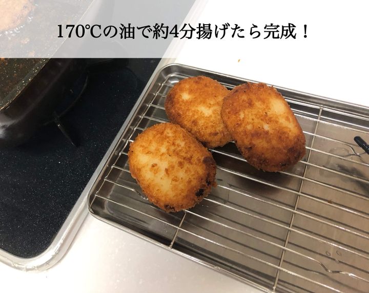 作り方は冷凍のまま、170℃の油で約4分こんがり揚げるだけで完成!