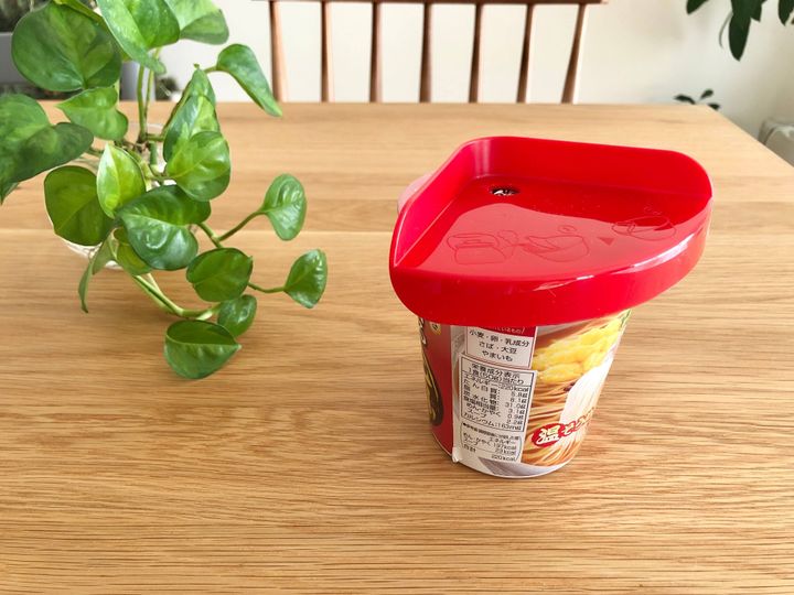 カップ麺にお湯を注いだ後、カップ麺の蓋の上にポンっと置くだけでOKなんですよ。
