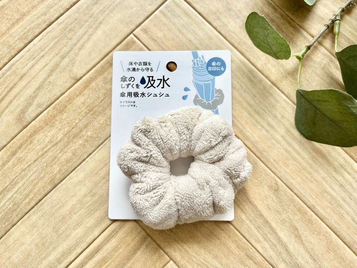 ご紹介するのは、セリアの「傘用吸水シュシュ」という商品。