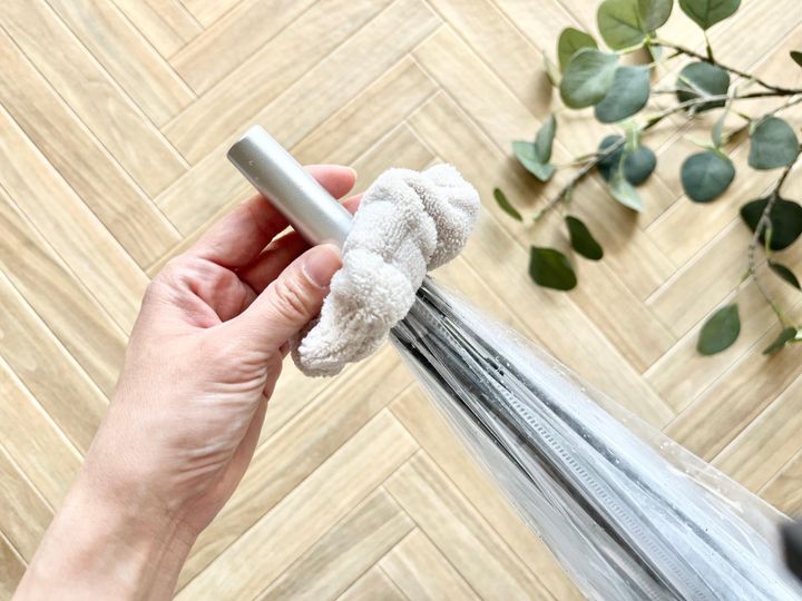 そんな悩みを解決してくるのが、セリアの「傘用吸水シュシュ」なんです。