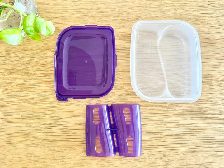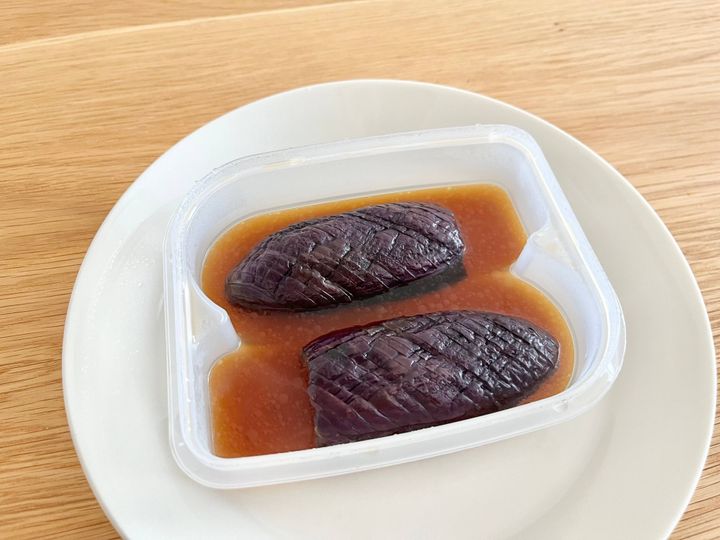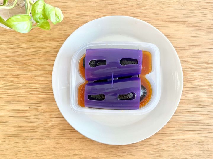 商品は、容器と蓋と落し蓋の3パーツに別れています。紫色の蓋が、なすびの煮浸し専用だとわかりやすく、なんだか可愛らしいですよね。
