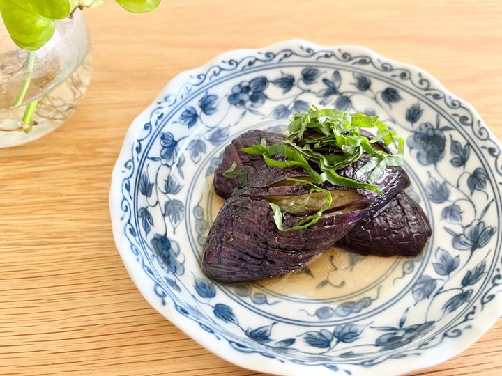 火を使わずに電子レンジのみで、手軽になすびの煮浸しが完成!もう見るからに味が染み込んでいて、美味しそうですよね?