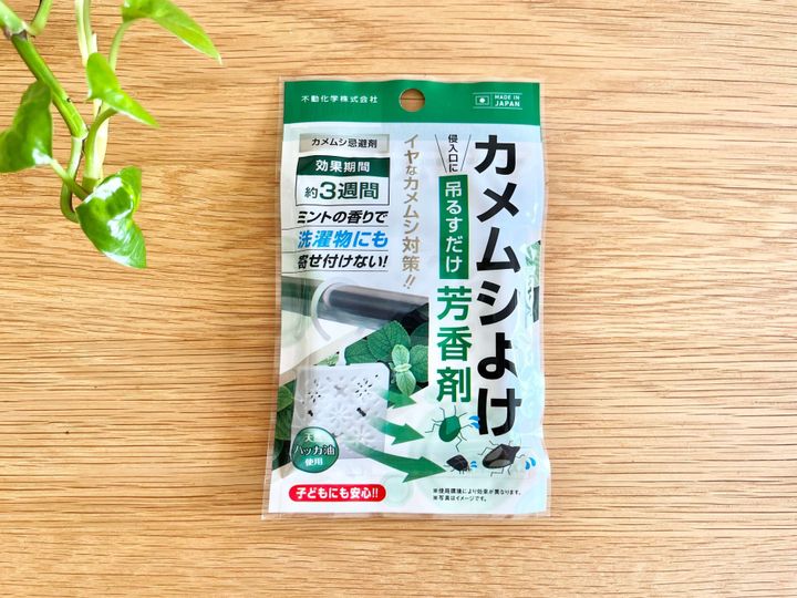こちらの商品は、カメムシ忌避︎︎︎︎剤入りの芳香剤です。見た目はシンプルなデザインで、いろんな場所に置いても馴染みやすいのも好印象。