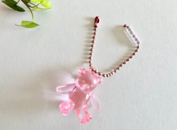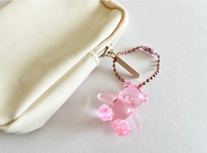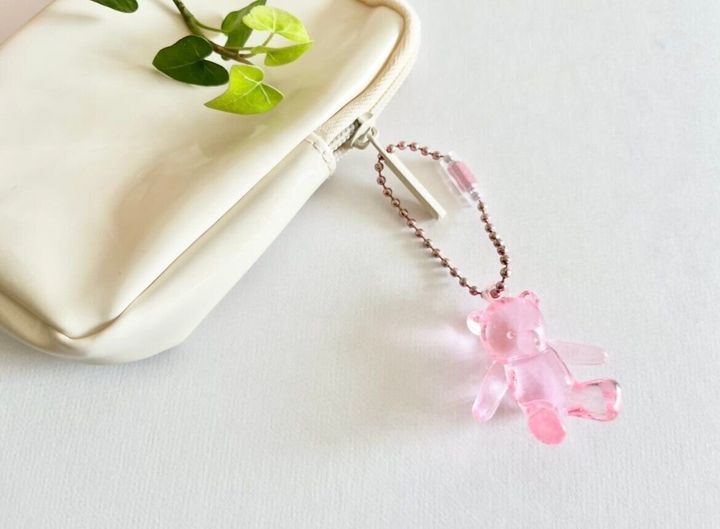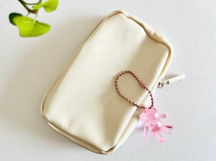 では早速取り付けてみたいと思います。まずはバッグやポーチなどと、それに取り付けたいお気に入りのボールチェーンのキーホルダーを用意します。