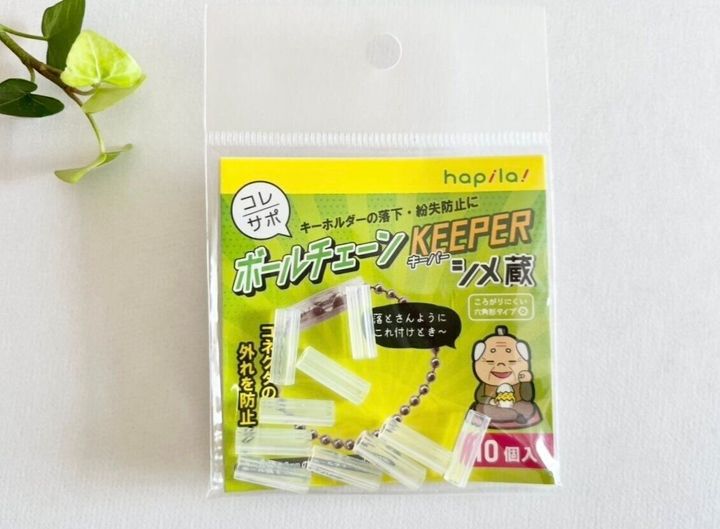 ご紹介するのは、セリアの「ボールチェーンキーパー シメ蔵」という商品。こちらの商品は、ボールチェーンのキーホルダーのコネクタ部分に取り付けることで、落下・紛失を防げる超便利グッズなんですよ。