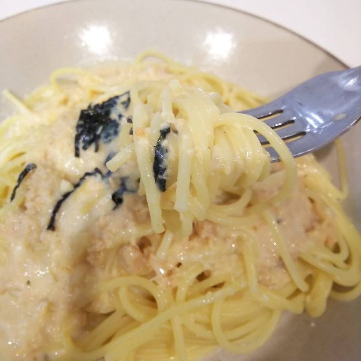 一口食べると、しゃけしゃけめんたいがパスタによく合っていて、見事に明太クリームパスタに変身していました!鮭フレークをところどころに感じましたが、牛乳のまろやかさが入ってのどごしも良いです。後味に、辛子明太子のピリっとした感じはしっかり残っています!期待以上のおいしさでした。平日のお昼にこそっと作って食べてみたのですが、これは手抜き感を全く感じず、休日のお昼に堂々と出せるパスタだなと思いました。
