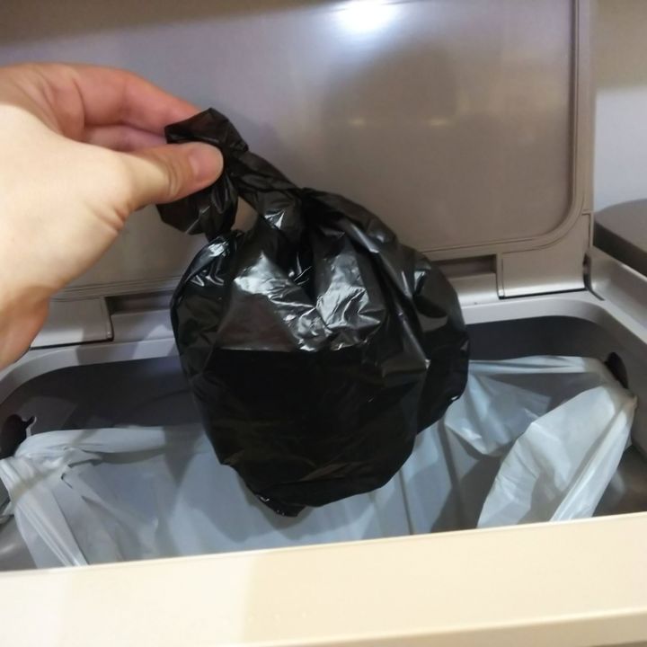 3. ゴミ袋の口を結んでゴミ箱へポイッ!