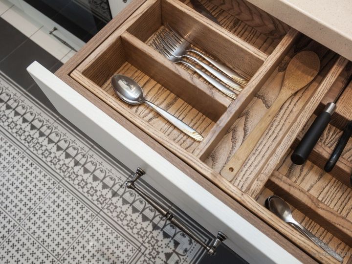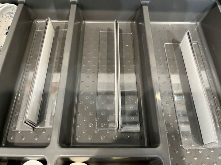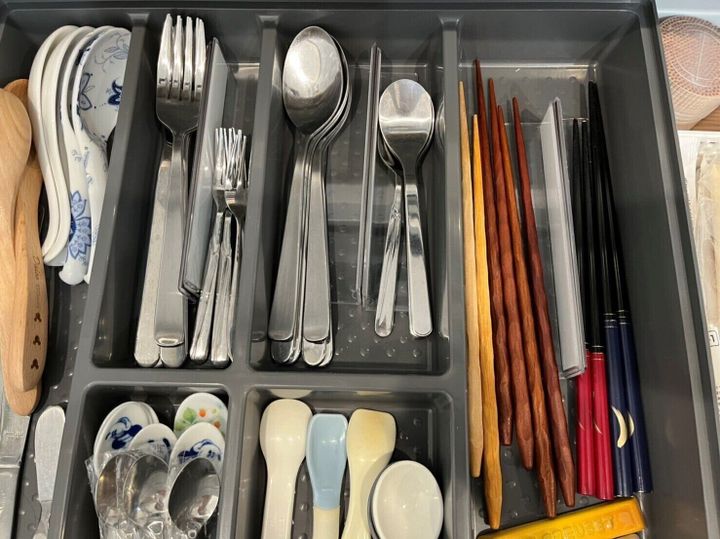 マグネット付仕切りによって、さらに引き出し内を仕切ることができたので、スプーンやフォークの大と小で分けて収納できるようになり、取り出すときも一目瞭然になりました。お箸の方も常用と来客用で分けて収納できるようになりました。
