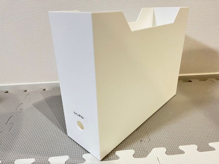 ・ファイルボックスの中にワイングラスがすっぽり収まるので見た目もスッキリ収納できること