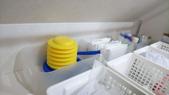 つっぱり棒で仕切ったことで、収納ケースの奥にさらに収納スペースを発見!