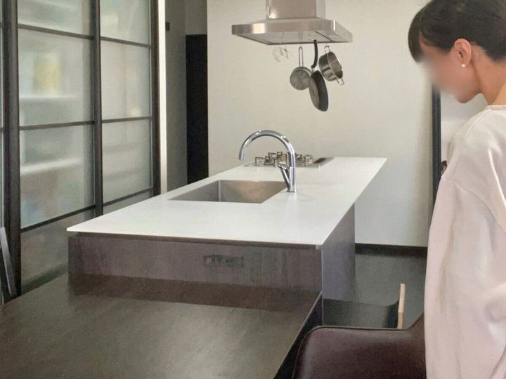 物がないフラットなキッチン台はアルコールスプレーを全体にシュシュっと吹きかけて、キッチンペーパーで拭き取れば掃除が完了。掃除がらくにできます。
