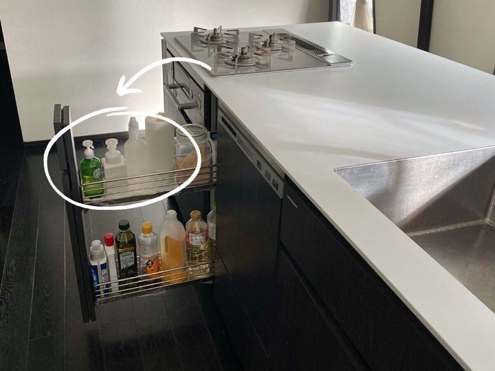 ・ハンドソープのボトルや洗剤はスパイスラックの引き出しにしまう
