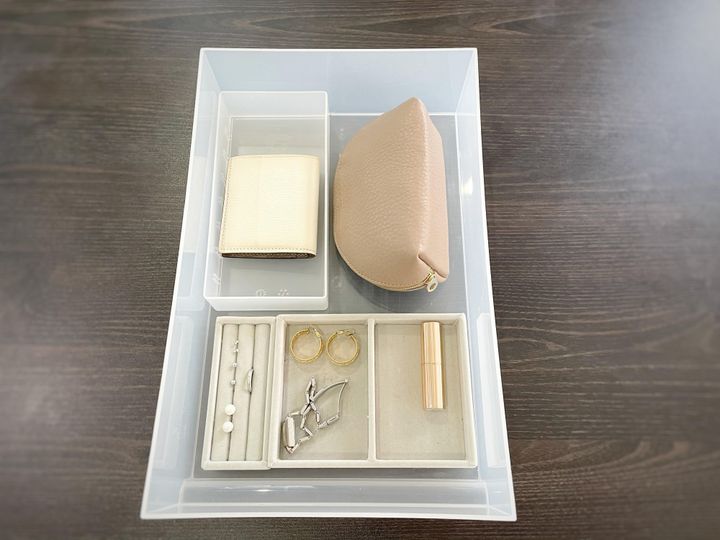 財布とポーチはバッグに入れたままにしないで、引き出しの中の専用のスペースに置きます。