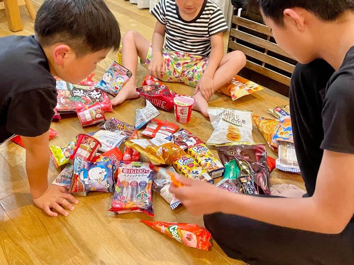 スーパーで、子ども達の好きなお菓子を爆買い!かなりの量ですが、実は2~3週間分のおやつを先買いしただけだったりします。