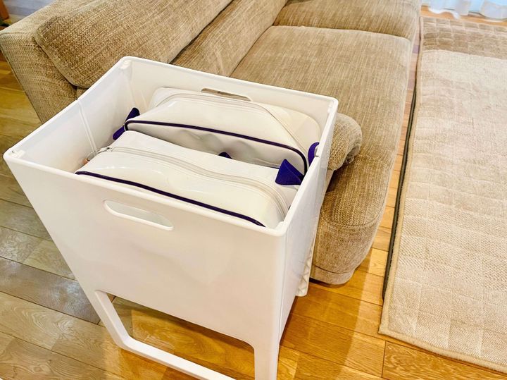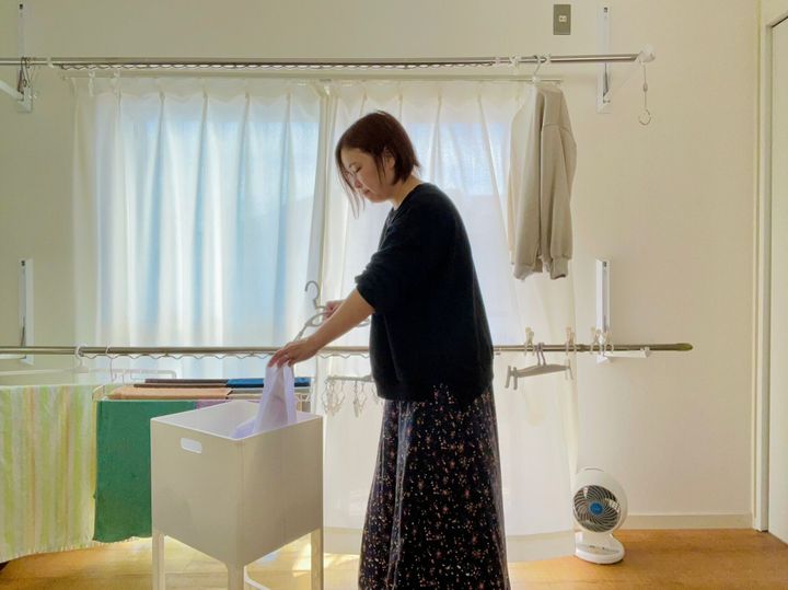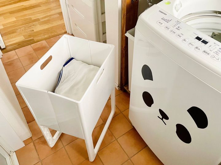 毎日の洗濯をラクにしてくれたのは、日本製の脚付き洗濯カゴ。折りたたみ式で、サッと簡単に広げて使うことができます。
