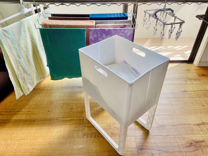 毎日の洗濯の負担を減らして、家事をラクにしてくれた「折りたたみ&脚付きバスケット・アコット」。