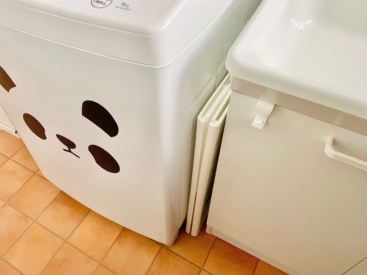 折りたたみ時の幅は約4cm。とてもスリムなので、収納場所にも困りません。わが家の狭い洗面所でも、洗濯機横のすき間にスッキリ収まりました。