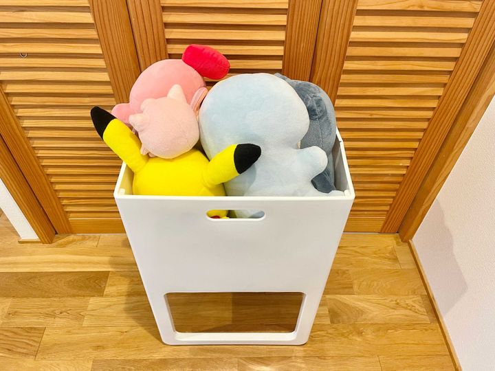 洗濯カゴ以外にも用途はたくさん。脱ぎっぱなしになりがちなパジャマや、子どものオモチャ、かばん置き場にしてもよいですね。