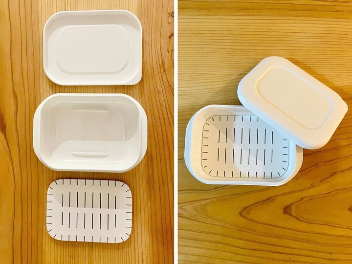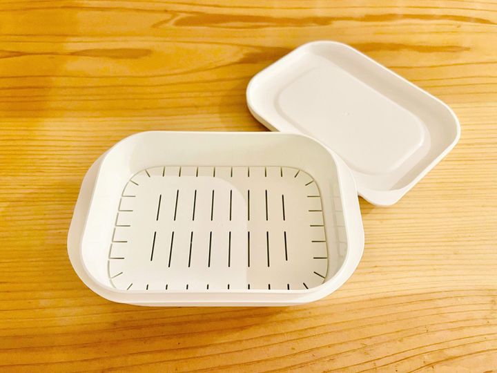 容器は薄く丸みがあり、ごはんを均一に温められる形状になっています。さらに、すのこパーツのおかげで余分な水分が下に落ち、ごはんがベチャッとしません。