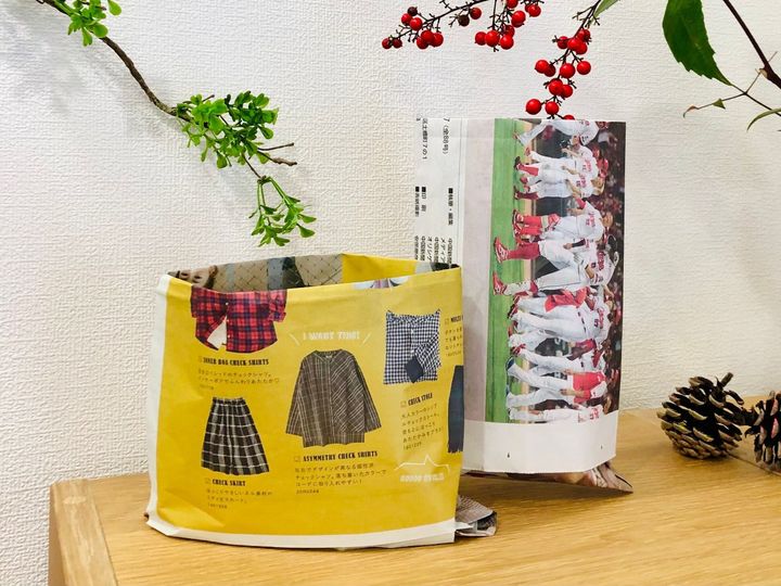 新聞紙を横向きにして折れば、安定感がアップするので、テーブルの上などに置いて使うのに便利です。