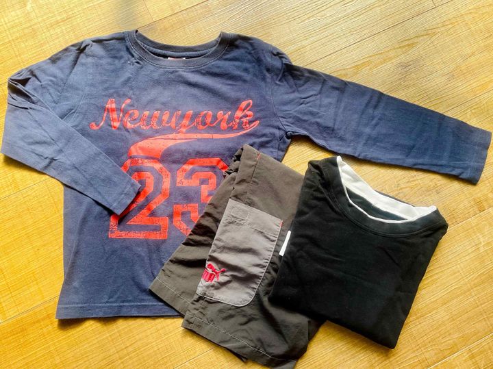 習字の日、絵の具を使う日には、黒っぽい色の服を来てもらいます。特に、墨は洗濯しても落ちないので、汚れても目立たない服を持っておくと便利ですよ。